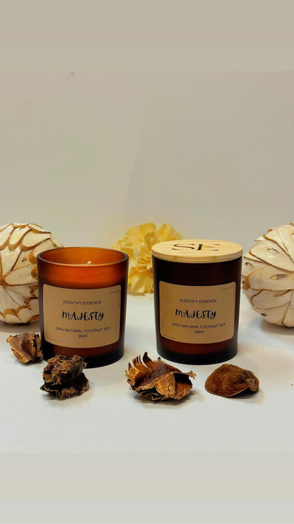 Experience regal elegance with Majesty, a hand-poured luxury candle that blends the fresh clarity of white tea, the brightness of zesty lemon, and the delicate sweetness of lily. Grounded by rich woody undertones, this sophisticated fragrance fills your space with a serene yet uplifting ambiance. Perfect for moments of relaxation or to elevate any gathering, Majesty brings timeless refinement to every flicker of its flame.